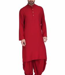 Maroon rayon kurta paired with maroon rayon dhoti style salwar