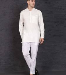 White cotton short kurta set with plain work