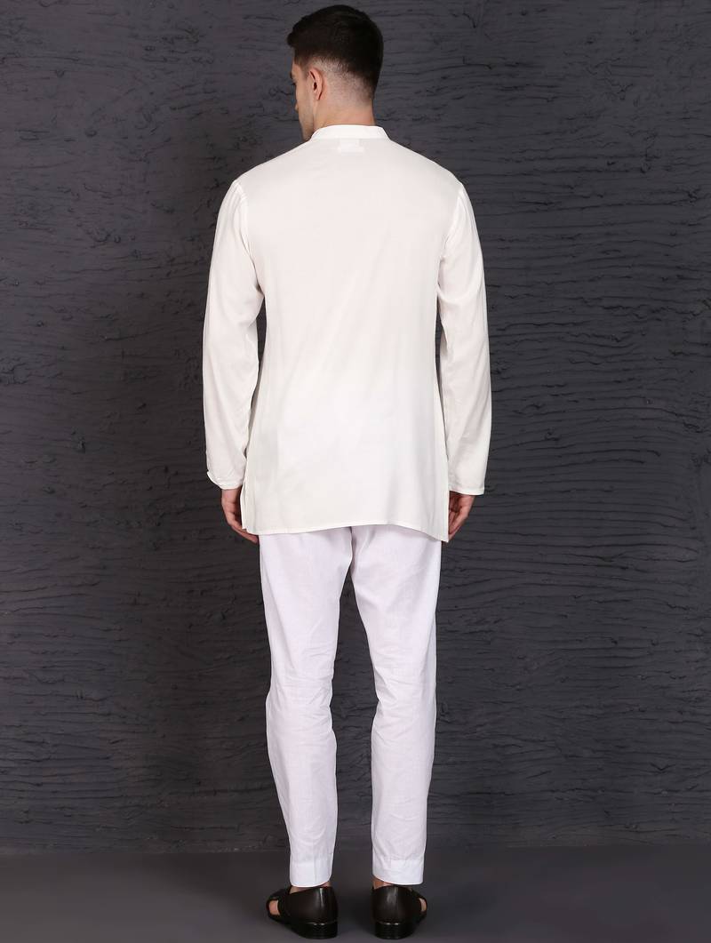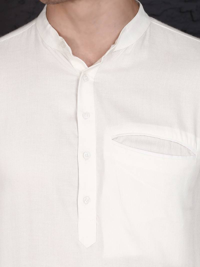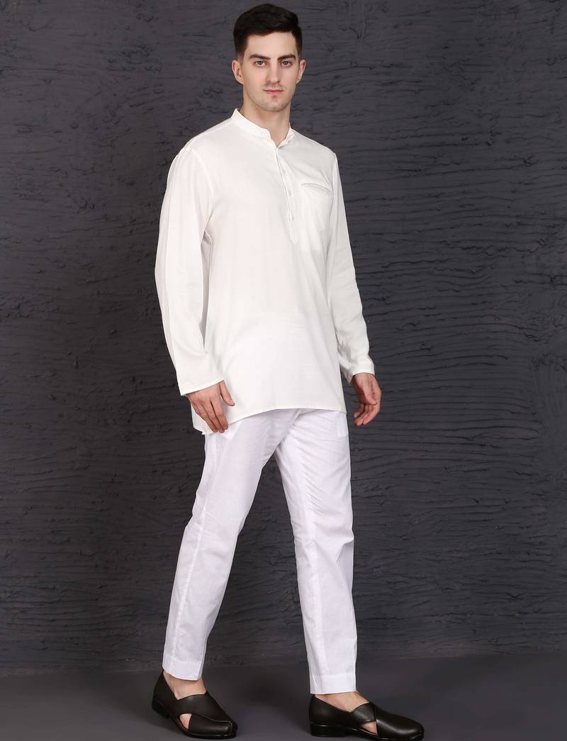 | Product Description | This White Cotton Short Kurta Set Features A Plain Work Design With A Chinese Collar Neck And Full Sleeves. The Short Kurta Is Paired With A White Blended Cotton Pant In Trouser Style. Made From Breathable Fabric, The Stitched Set Offers Comfort And A Traditional Appearance. Includes One Kurta And One Pant. |