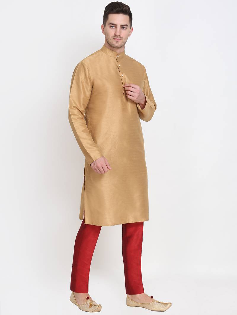 | Product Name | Men's Raw Silk Golden Kurta With Maroon Pant Set | |