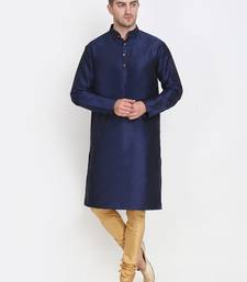 | Product Name | Men's Raw Silk Navy Blue Kurta With Gold Churidar Set | |
