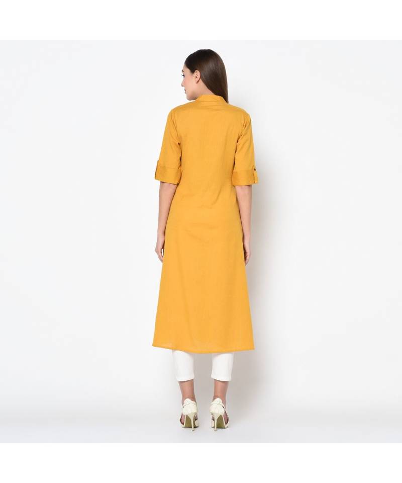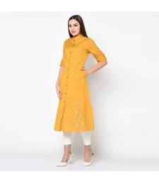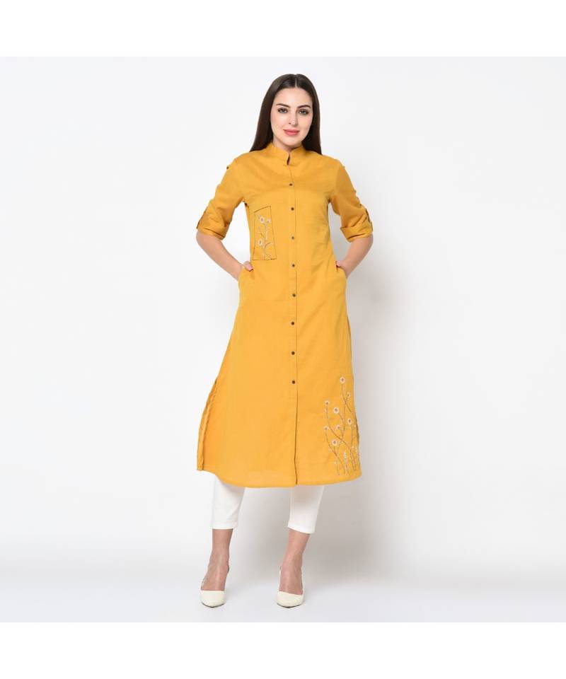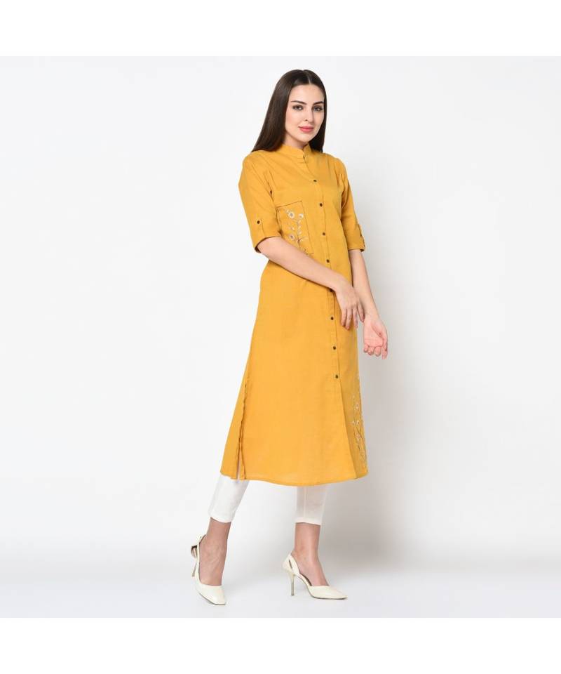Women yellow embroidered straight kurta