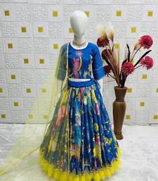 Alluring chinon silk embroidery digital printed rama lehenga choli