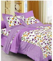 Purple 104 tc cotton printed double bedsheet with 2 pillow covers