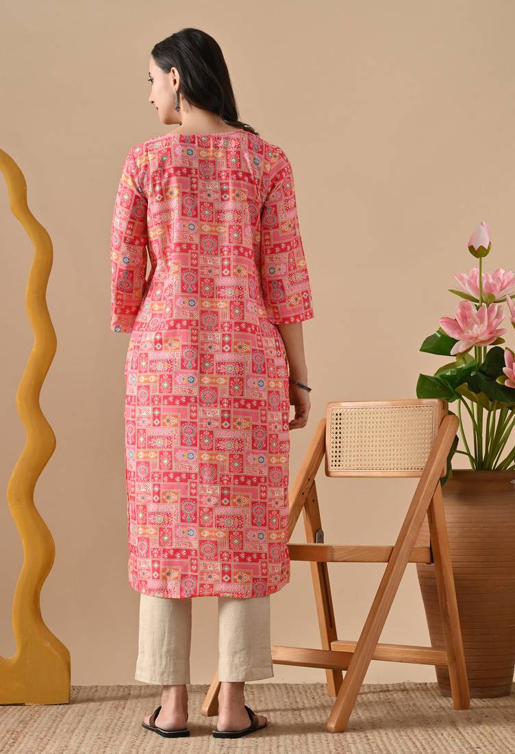 Pink printed viscose rayon ethnic kurtis