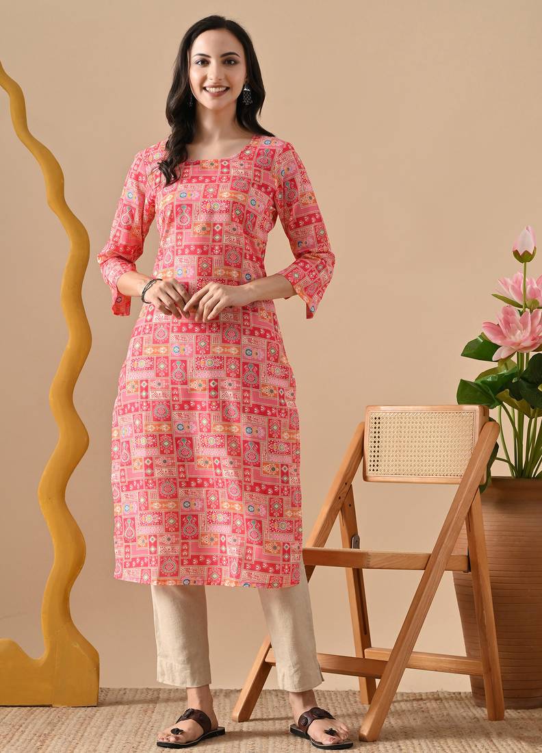 | Product Name | Pink Printed Viscose Rayon Ethnic Kurtis | |