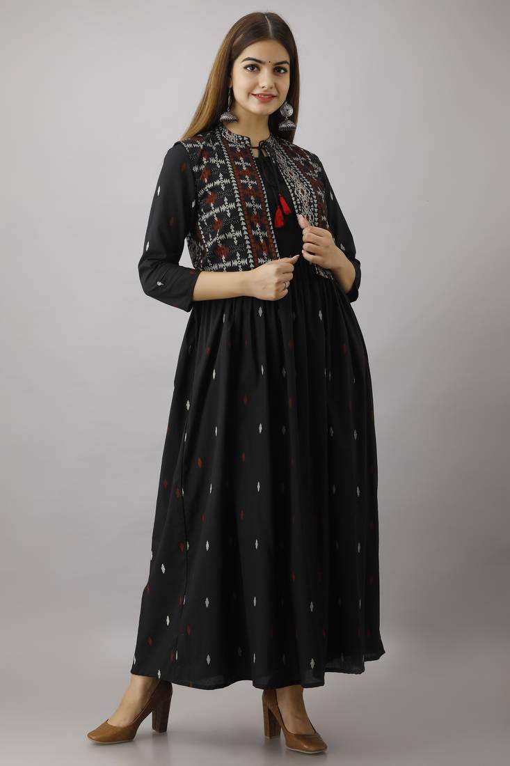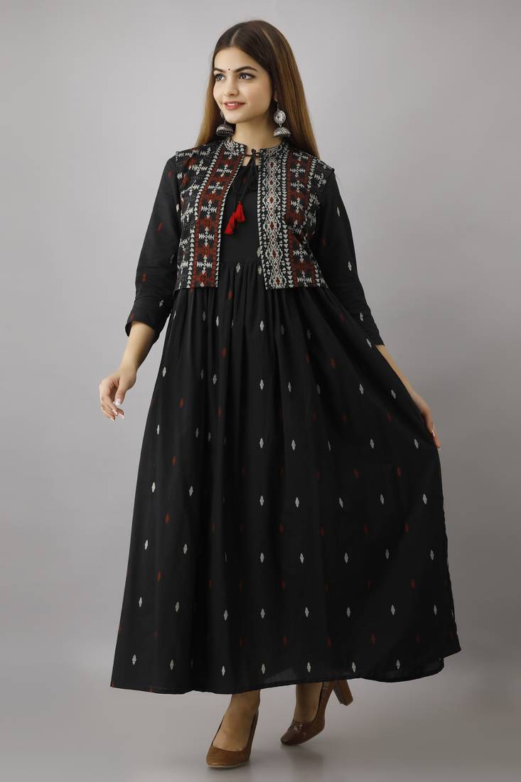 Product Name | Ft Diva Women Ikkat Anarkali Kurta With Jacket In Black | |