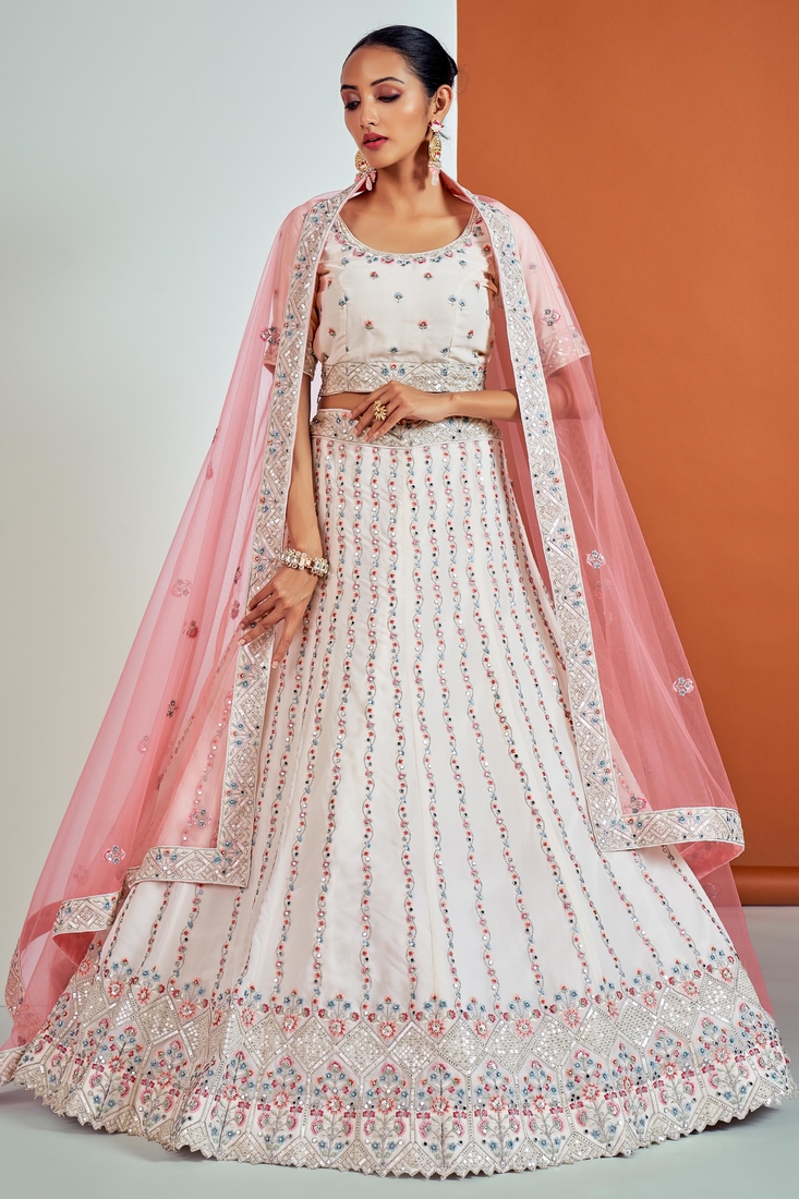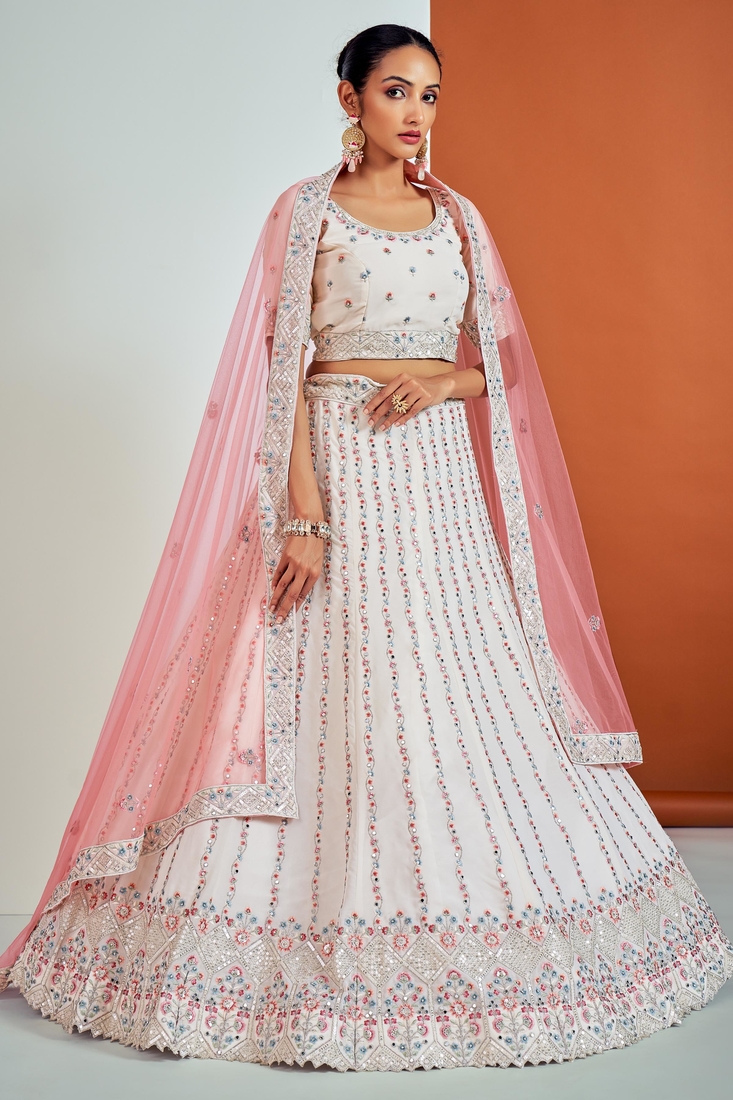 | Product Name | White Embroidered Georgette Semi Stitched Lehenga | |
