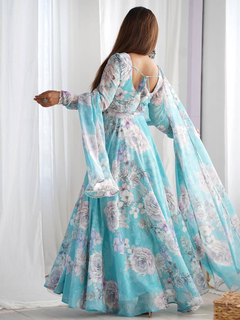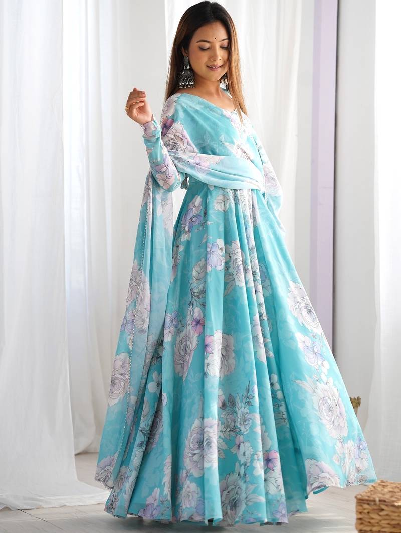 Women’s floral printed heavy fox georgette anarkali gown with matching dupatta stitched