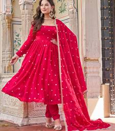 Rani pink heavy fendi silk anarkali suit set with sequin & thread embroidery