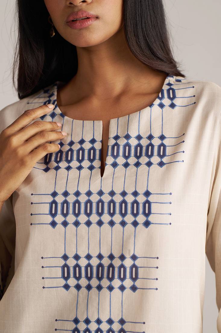 Beige and blue mul-mul print co-ord set