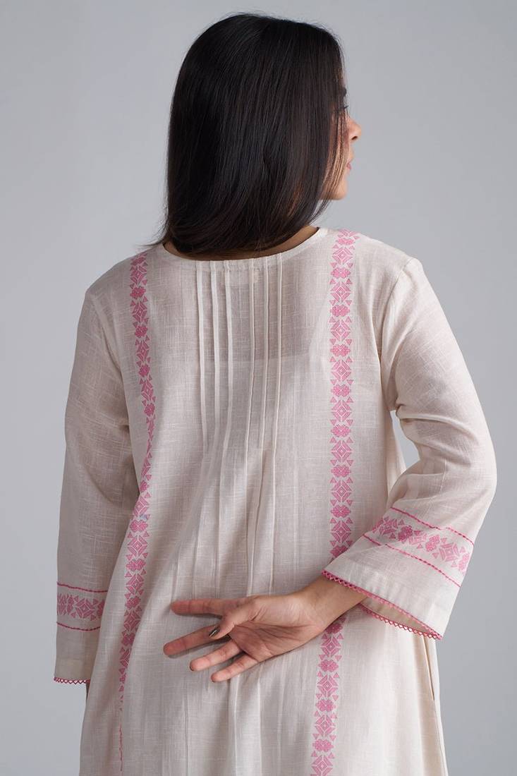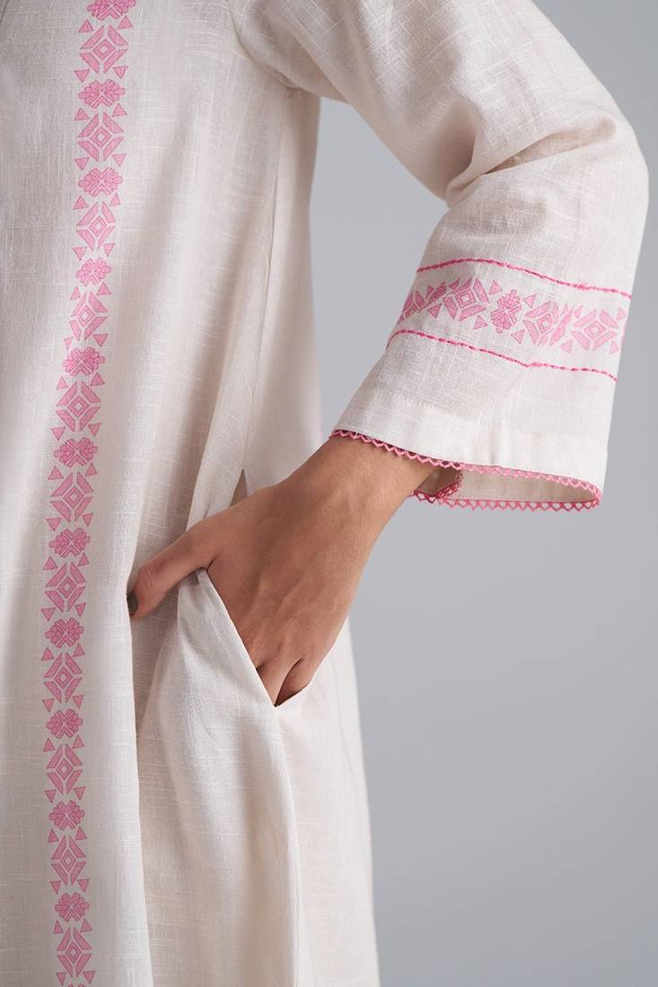 | Product Name | Ivory With Morning Glory Pink Cotton Linen Co Ord Set | |