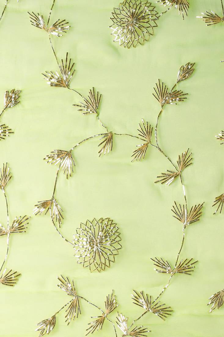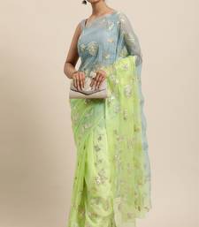 | Product Name | Geroo Jaipur Green Grey Shaded Handcrafted Gota Patti Chiffon Saree | |