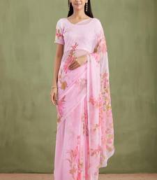 | Product Name | Pink Hand Painted Mukaish Chiffon Saree | |