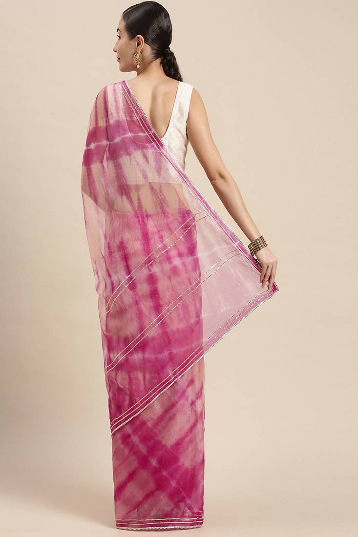 Geroo jaipur pink shibori organza saree by geroo jaipur - elegant and stylish