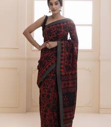| Product Description | Accentuate Your Wardrobe With This Red Black Chanderi Saree Crafted With The Effort Intensive Technique Of Hand Block Printing With Natural Vegetable Dyes. It Is Inspired By Prints Of Daabu And Is Further Adorned With Hand Weaved Ghicha Temple Border. The Exquisite Floral Prints Add A Touch Of Elegance To It. This Stunning Traditional Craftsmanship Gives This Set A Graceful Look That Can Be Worn On Various Occasions Or Just For Casual Wear. It Is Paired With A Matching Blouse Piece. This Product Is Hand Crafted Using Traditional Techniques Of Block Printing. Subtle Variations In Patterns Are Natural To This Process. We Believe This Makes Each Creation Unique And Charming And Helps You To Grab One Of It's Kind Piece. |