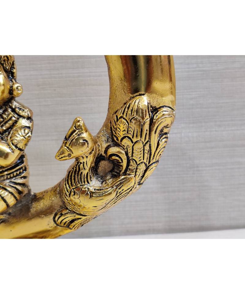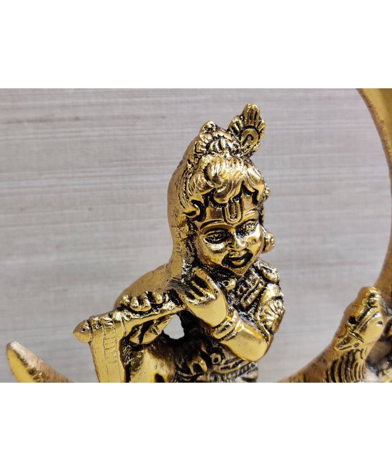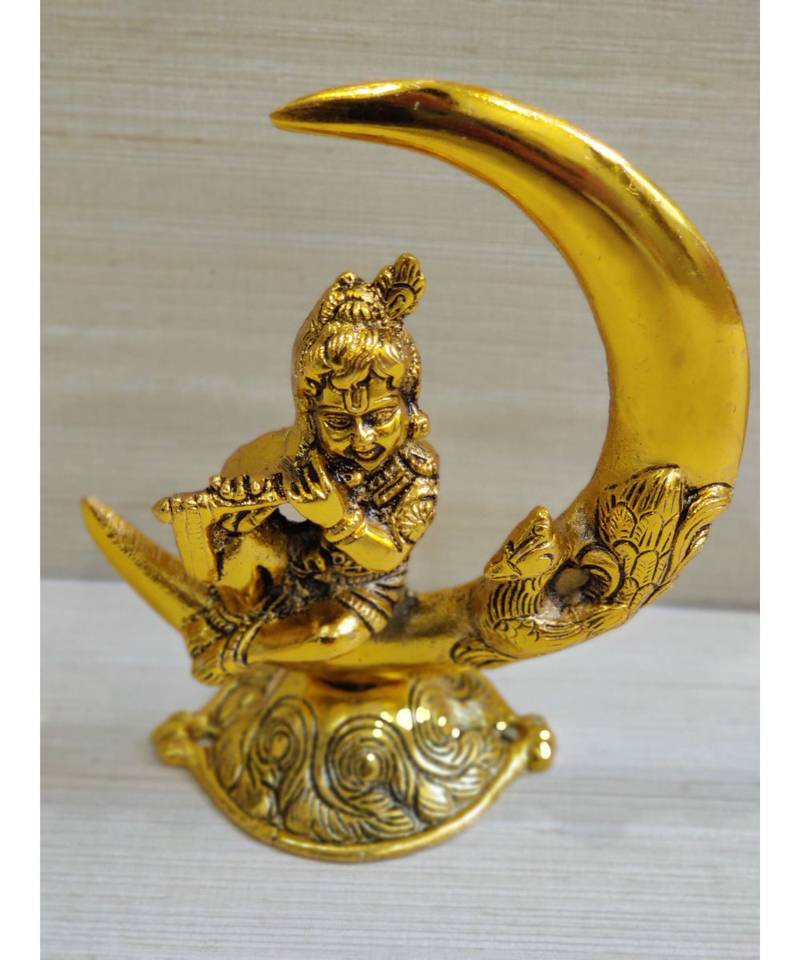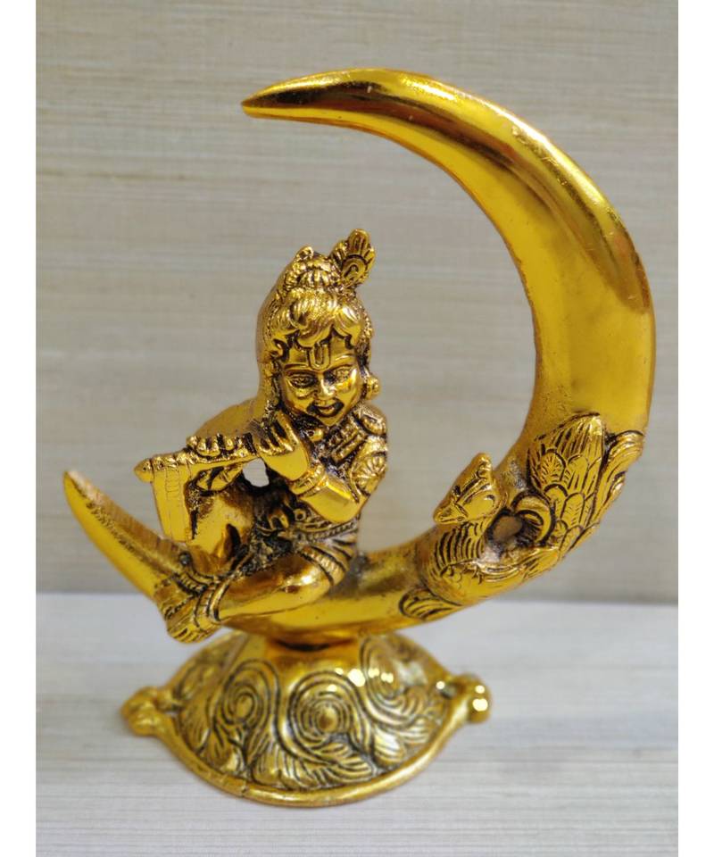 | Product Name | Golden Oxidized Antique Look Metallic Krishna Idol Playing With Flute Sitting On A Moon | |