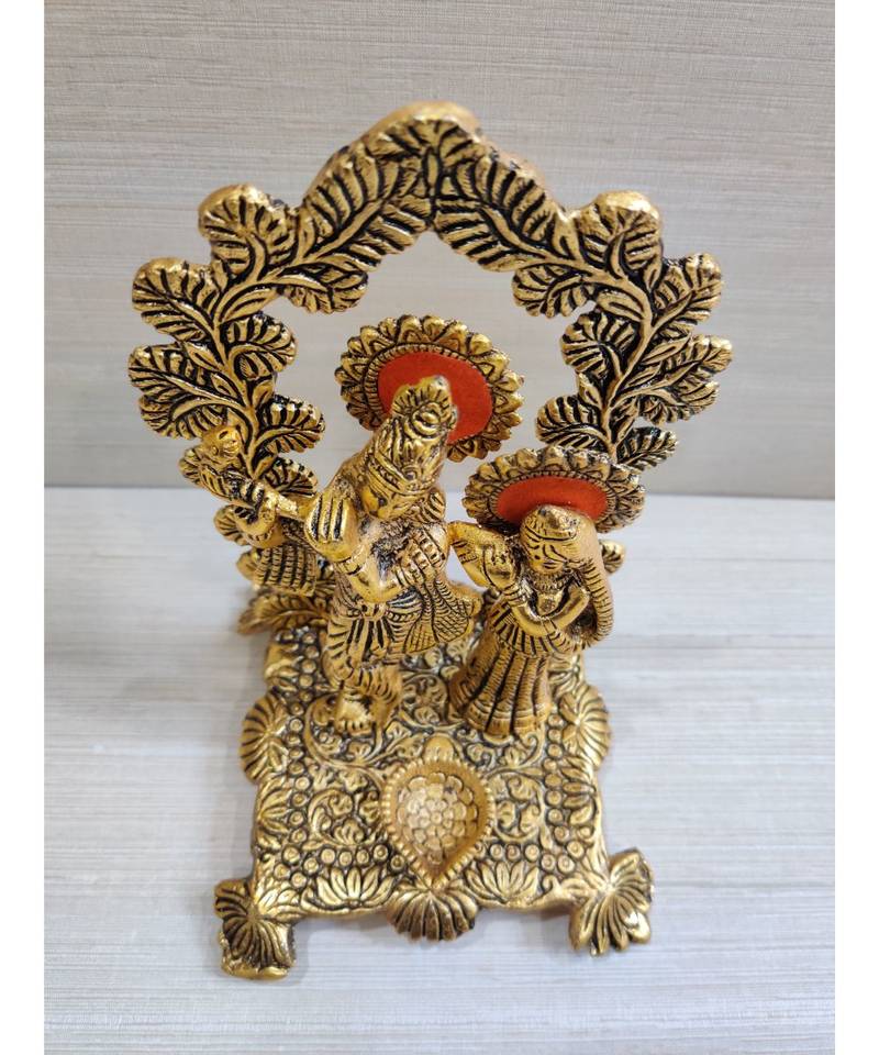 | Product Name | Golden Oxidized Antique Look Metallic Radha Krishna Darbar Idol With Diya In Front | |