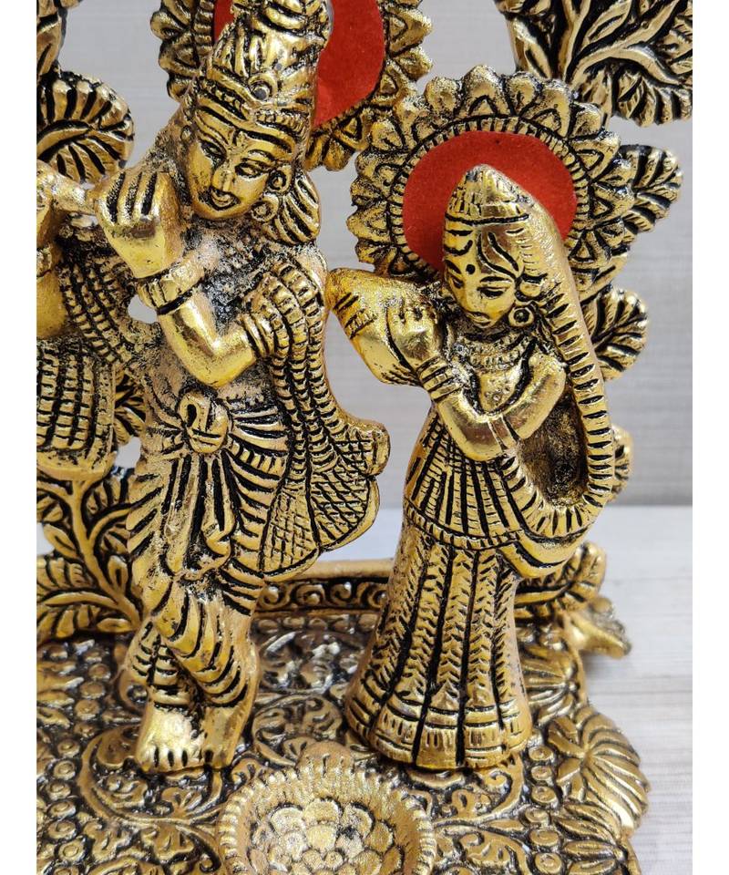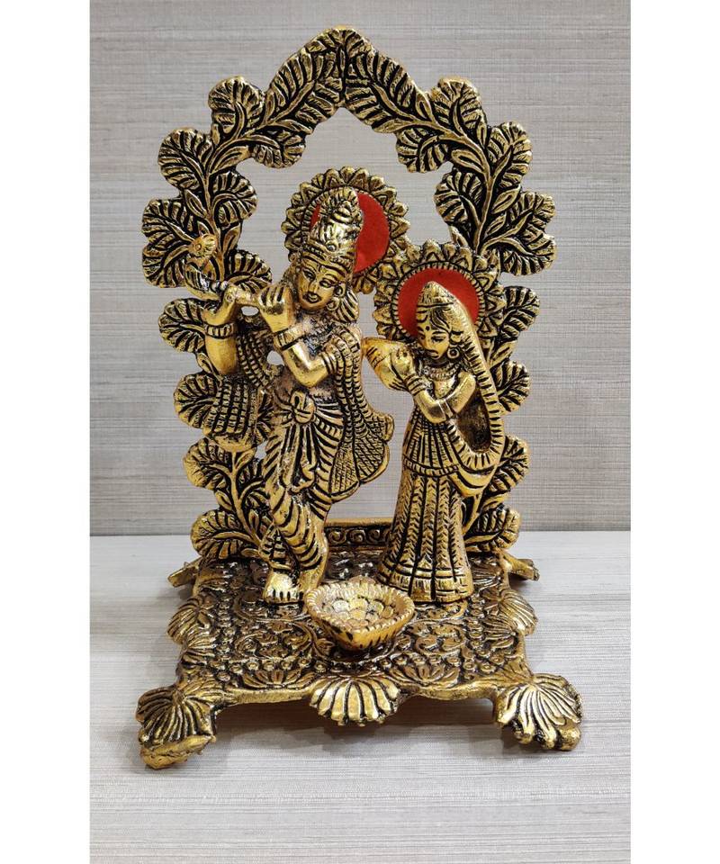 | Product Description | 1. Lord Radha Krishna Antique Look Showpiece With Gold Plating And A Diya In Front Dimensions (Wx Dx H) In: (12cm X 12cm X 18cm)