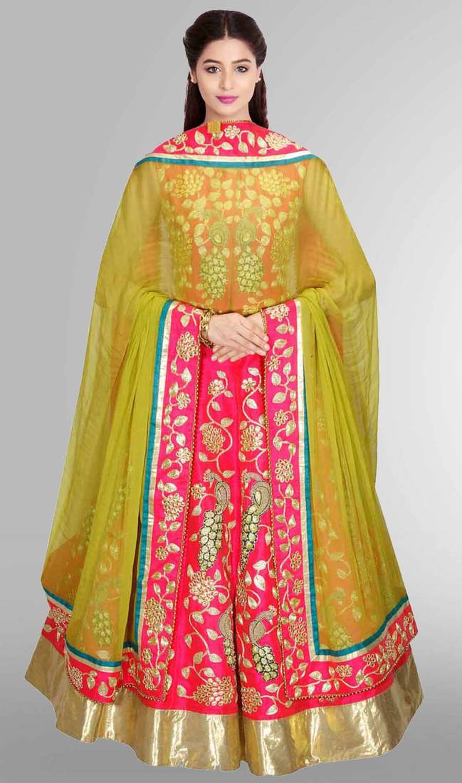 | Product Description | Pink Embroidered Silk Un Stitched Lehenga Choli With Dupatta |