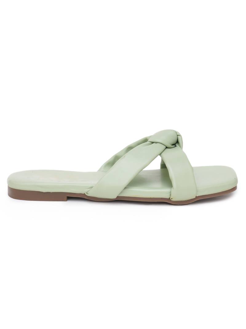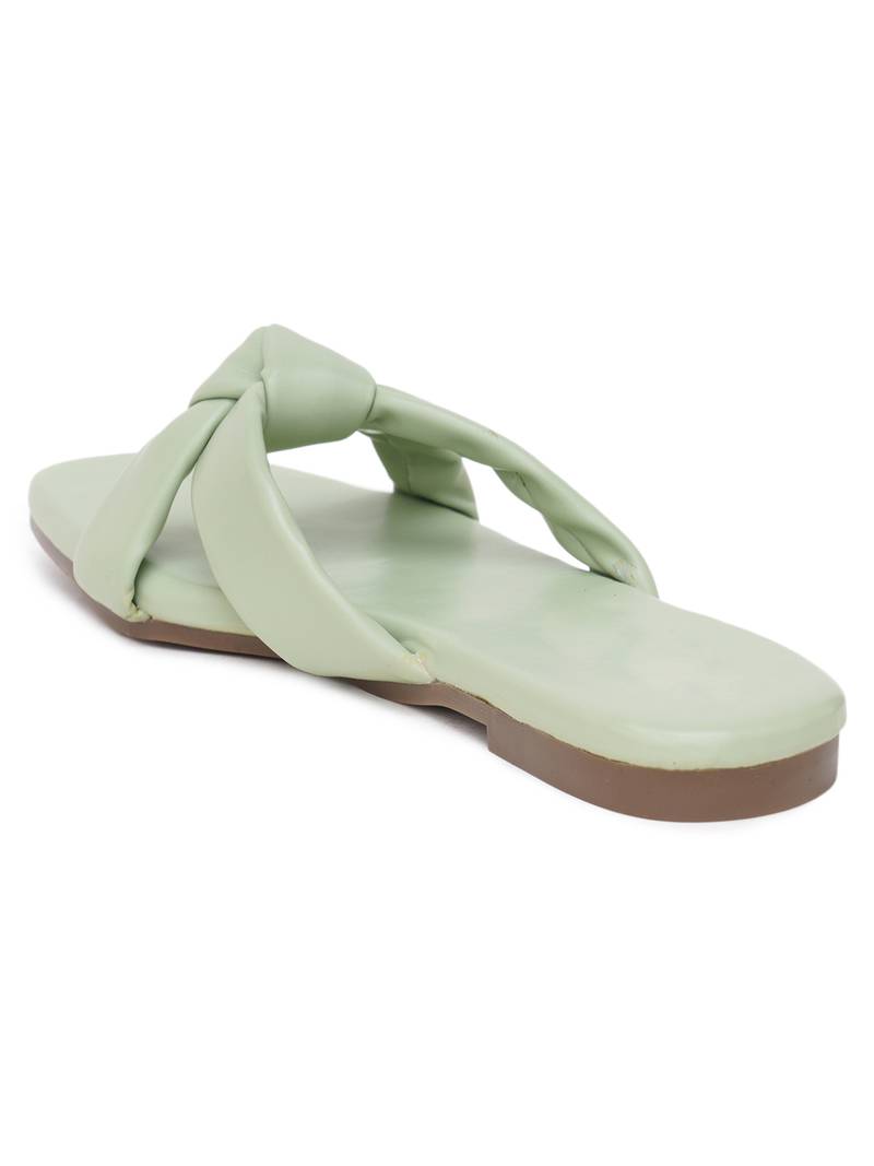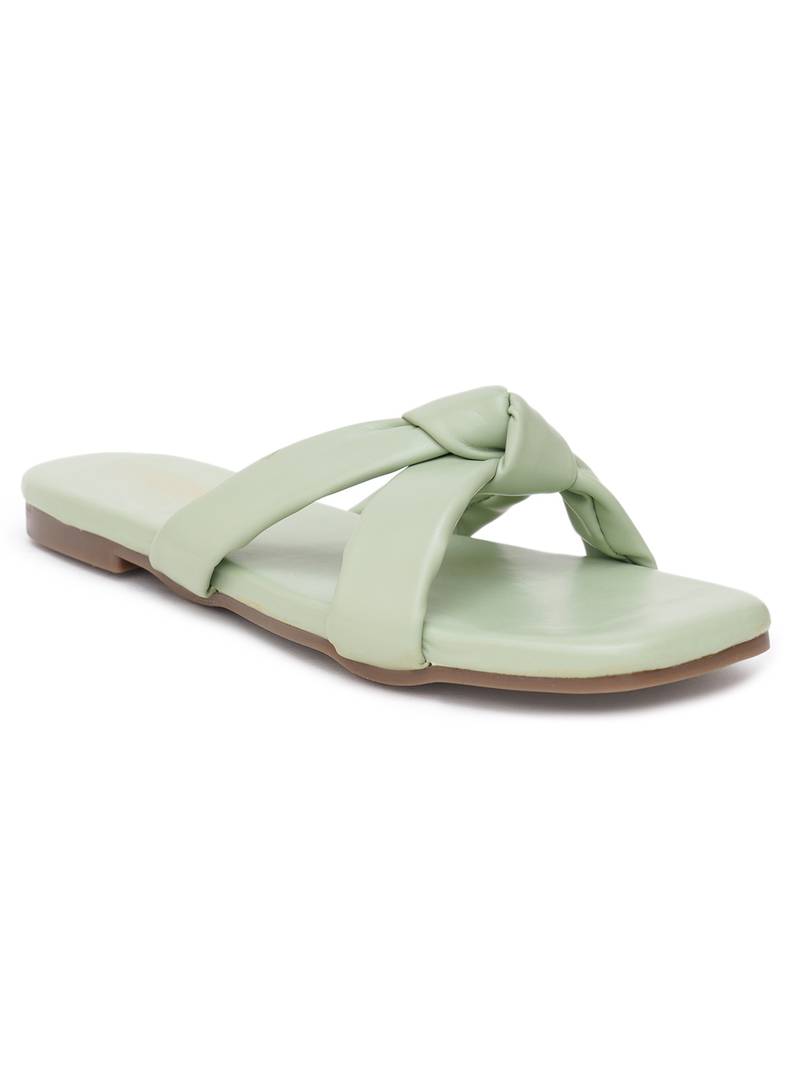 Glamzkart women green color knote design flats sandal