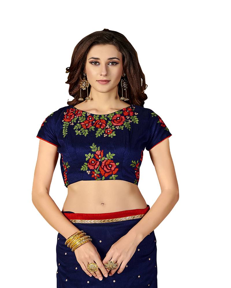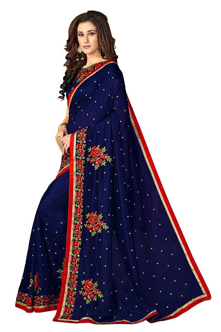 | Product Name | Dark Blue Embroidered Silk Blend Saree With Blouse | |