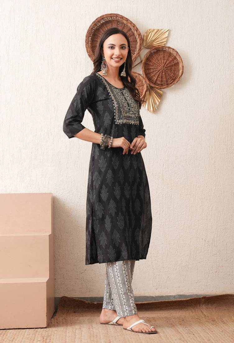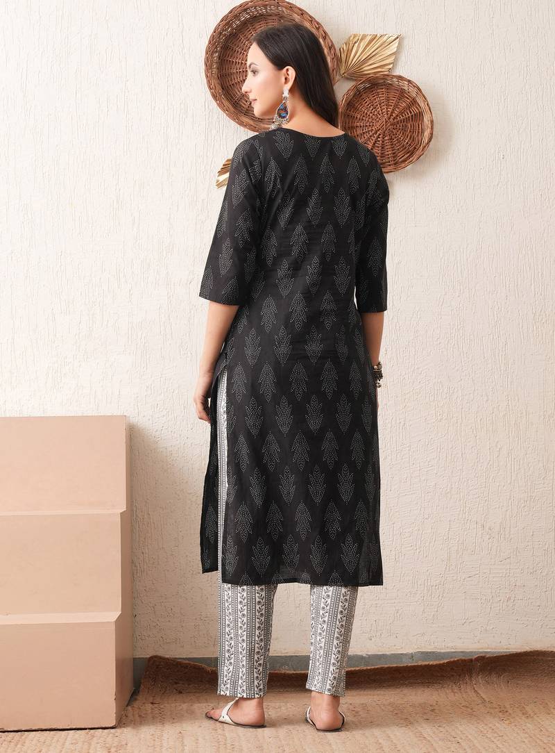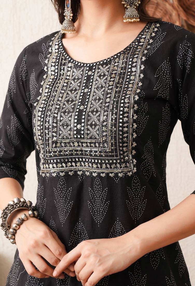 | Product Name | Gold Embroidered Chikankari Pure Cotton Black Straight Kurta Pant Set | |