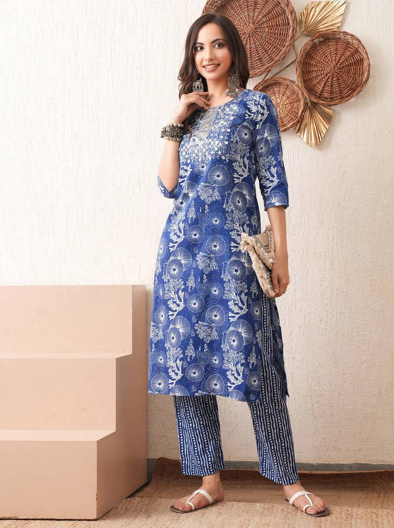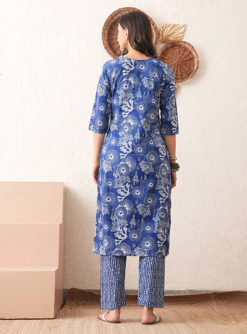 | Product Name | Gold Embroidered Chikankari Pure Cotton Blue Straight Kurta Pant Set | |