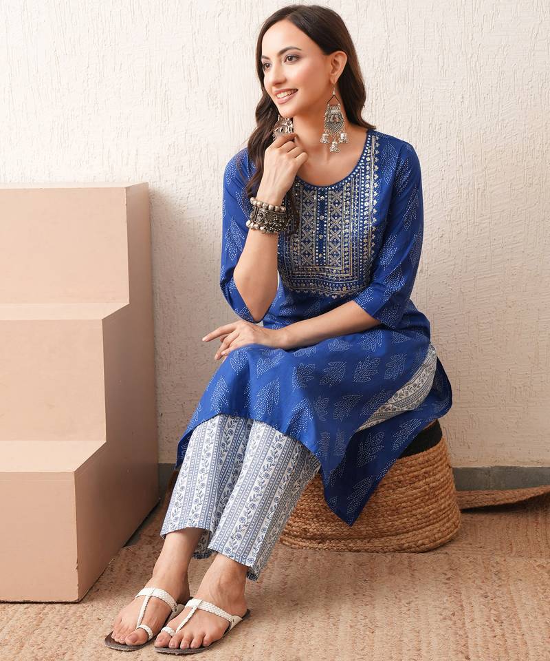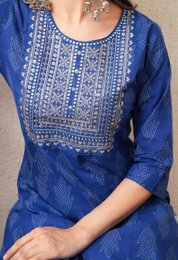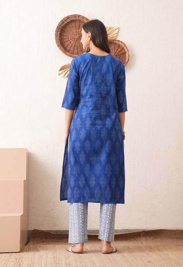 | Product Name | Gold Embroidered Chikankari Pure Cotton Blue Straight Kurta Pant Set | |
