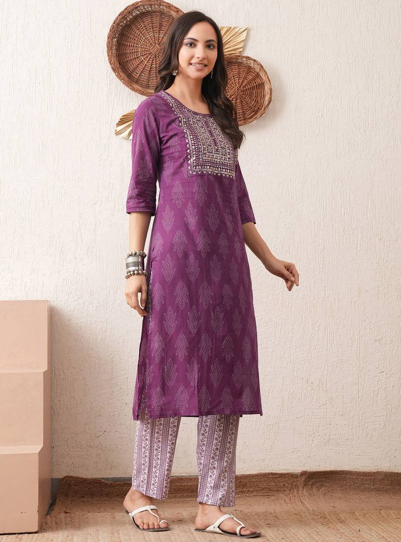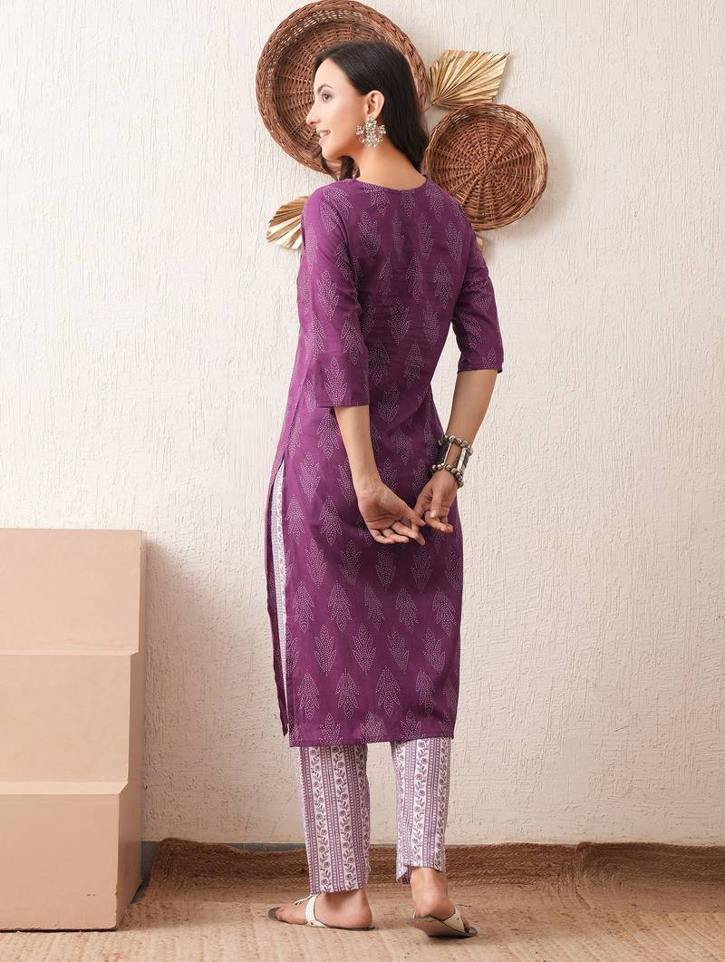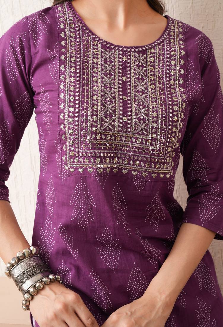 | Product Name | Gold Embroidered Chikankari Pure Cotton Dark Purple Straight Kurta Pant Set | |