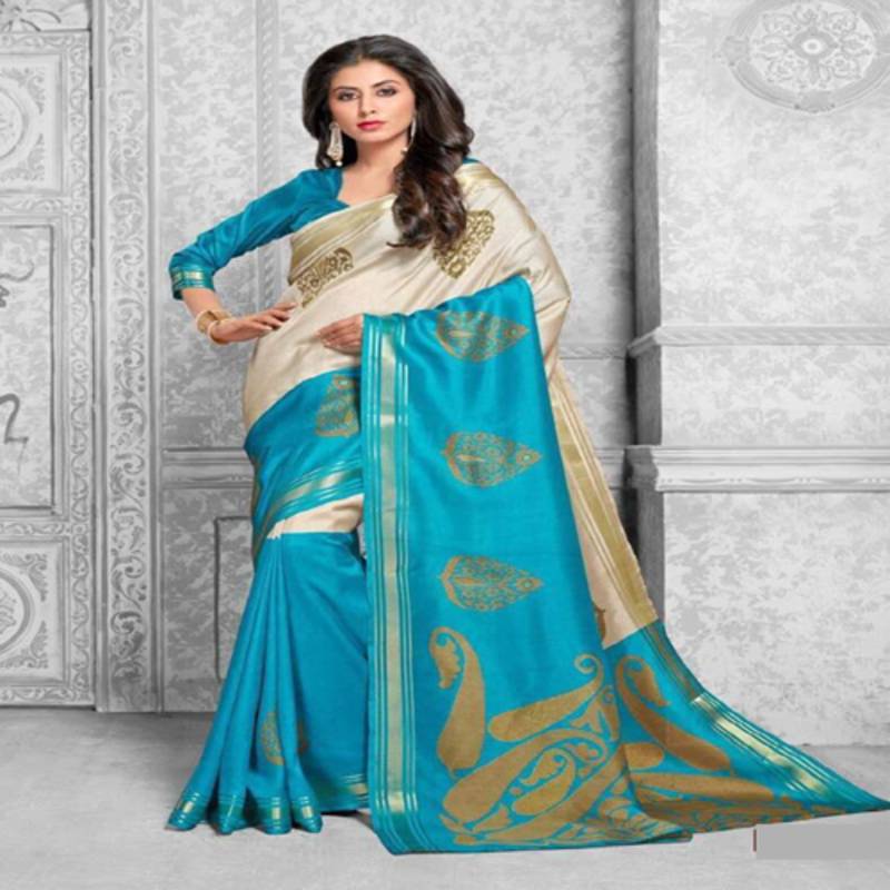 | Product Name | Turquoise Printed Silk Saree With Blouse | |