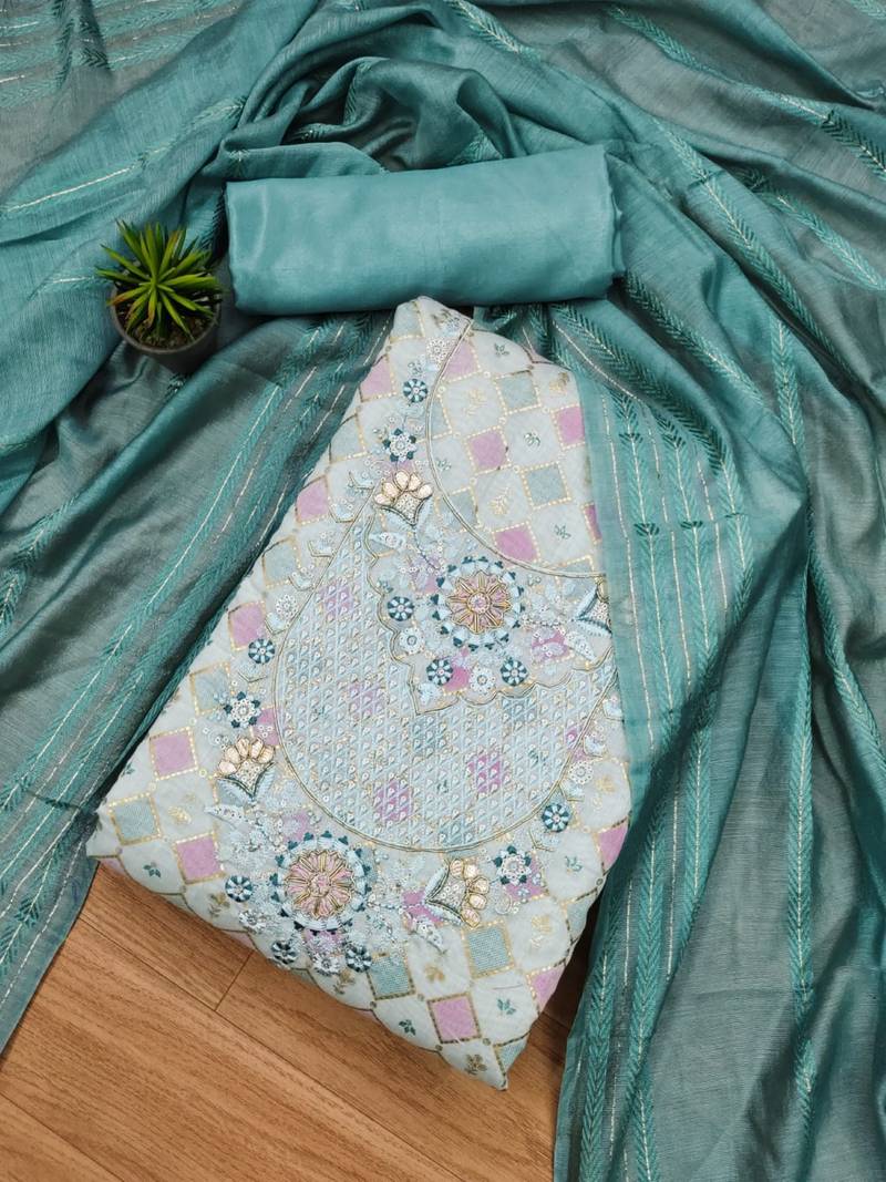 | Product Description | Chanderi Silk Handwork Salwar Suit |