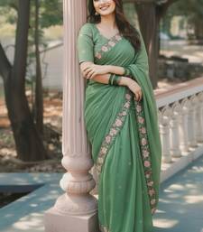 | Product Name | Green Thread Embroidery Floral Border Work Organza Silk Elegant Festive Style | |