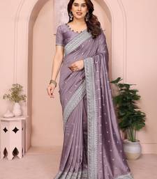 Lavender vichitra silk saree sequence embroidered saree with matching blouse piece