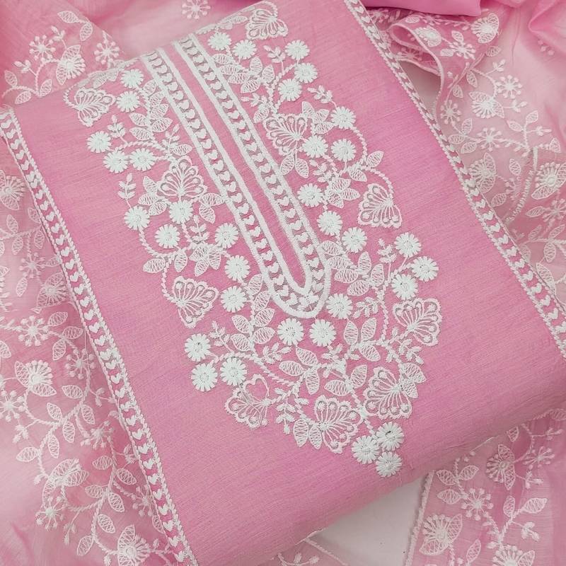 Light-pink embroidered chanderi silk salwar unstitched