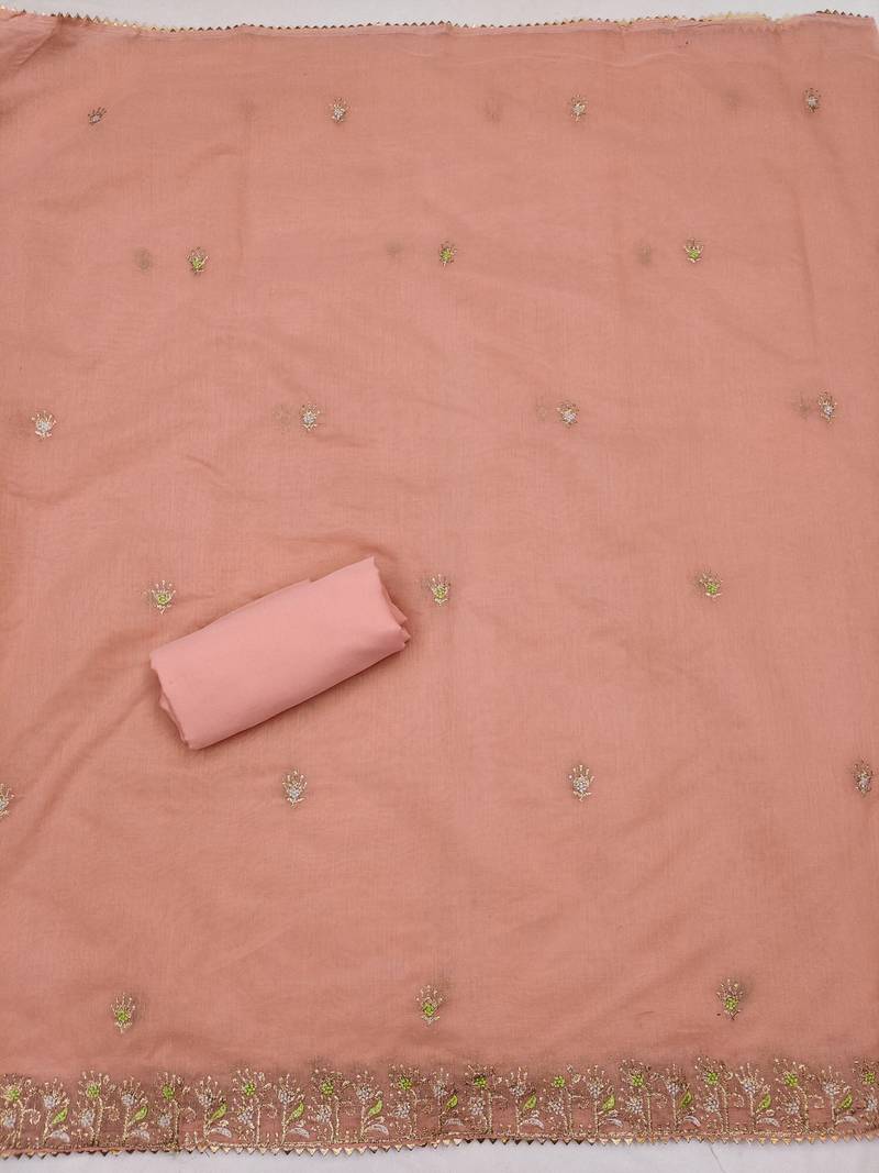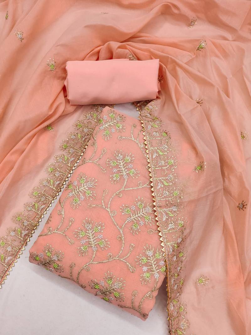 Peach embroidered chanderi silk salwar unstitched