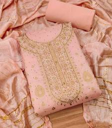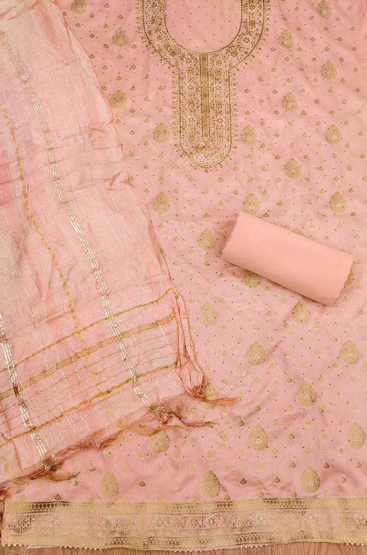 Peach jacquard chanderi silk salwar unstitched