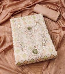 Peach printed chanderi silk salwar unstitched