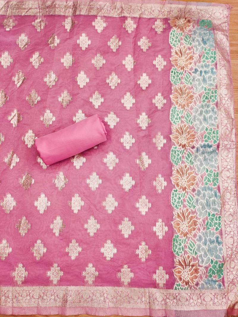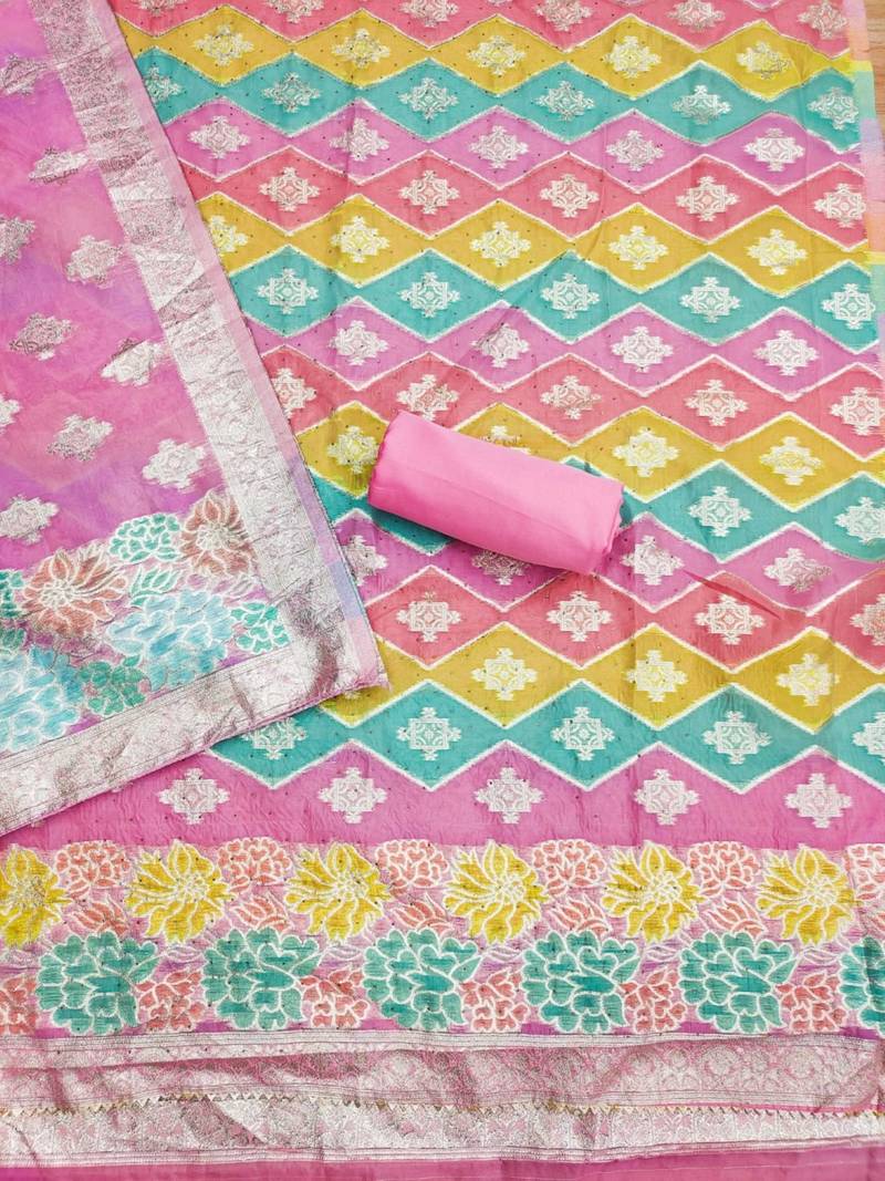 Pink diamond work organza salwar unstitched