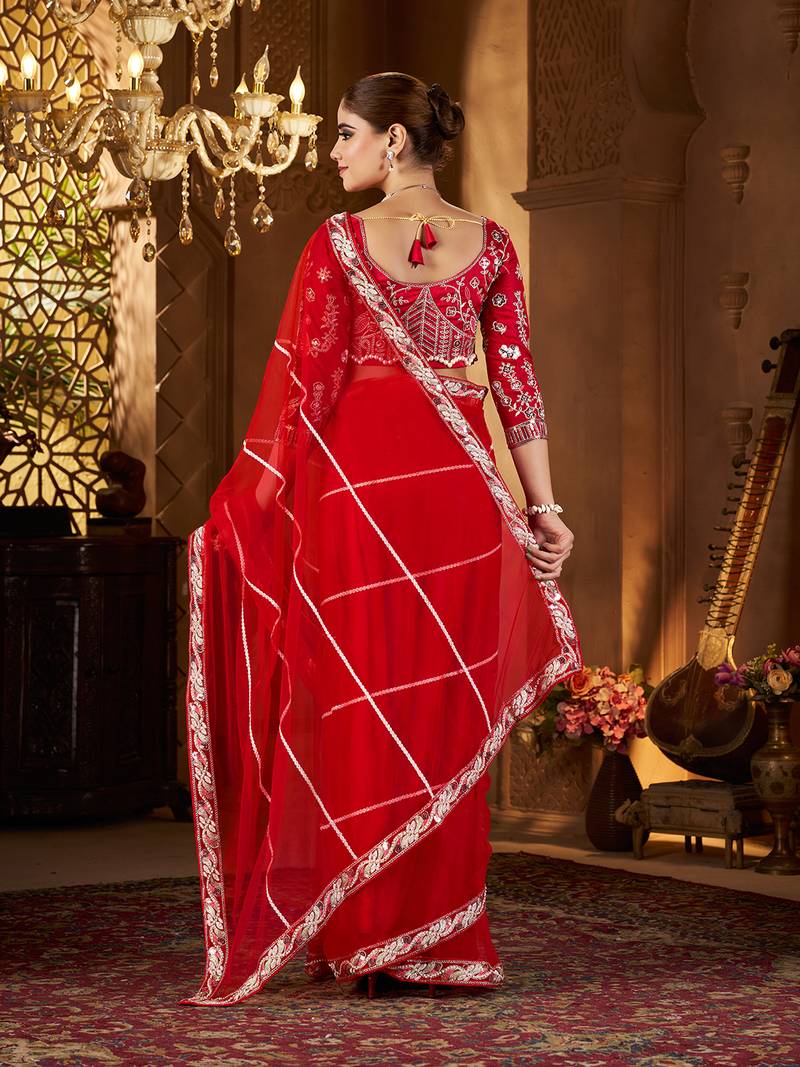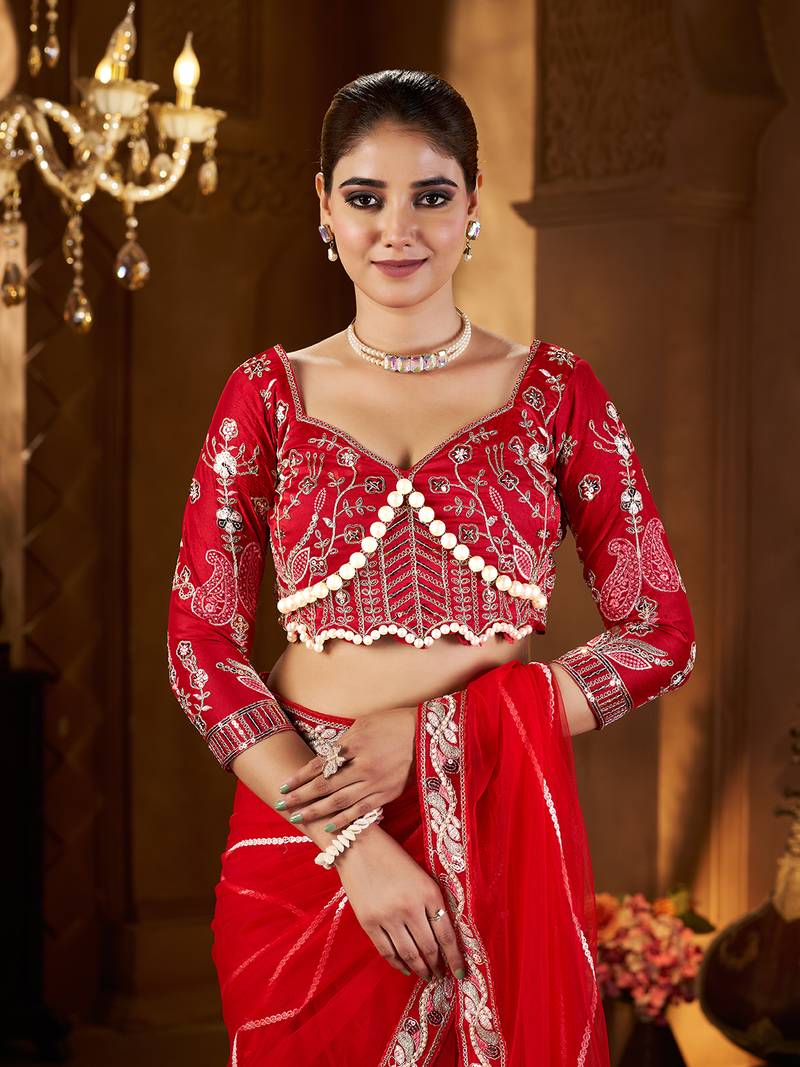 | Product Name | Red Net Embroidery Work Saree With Unstitched Blouse Piece | |