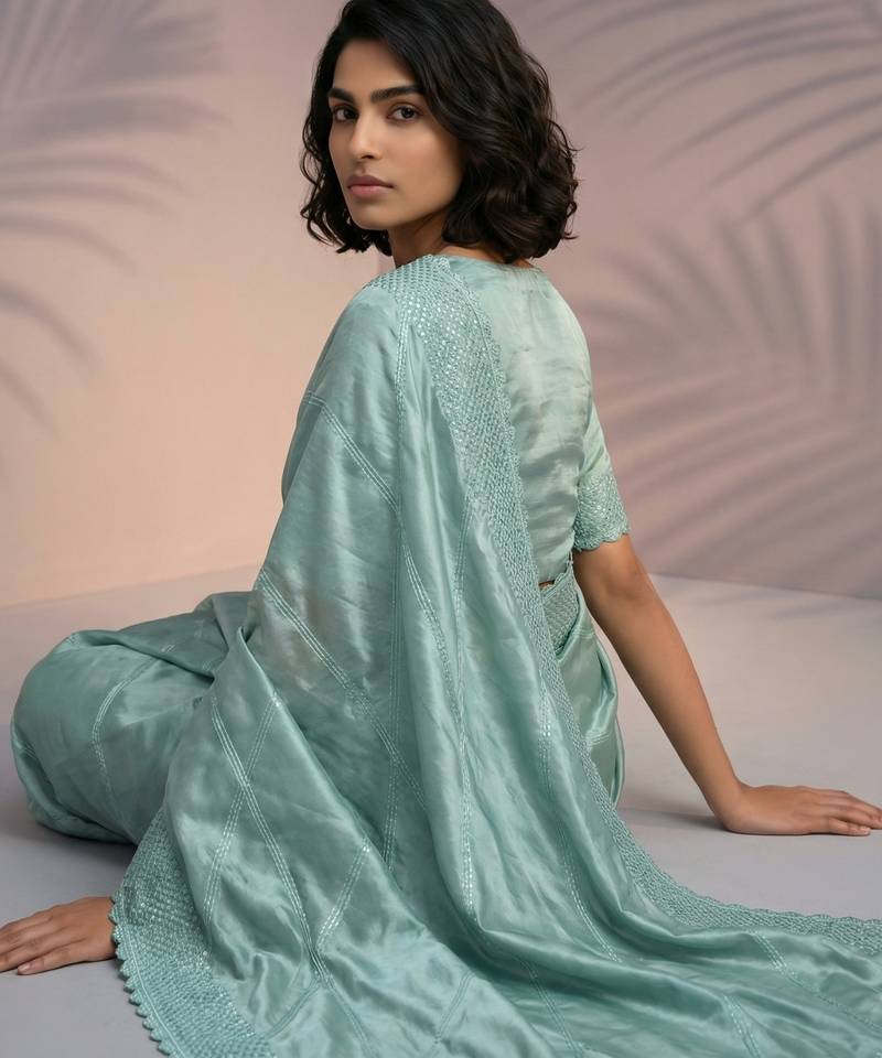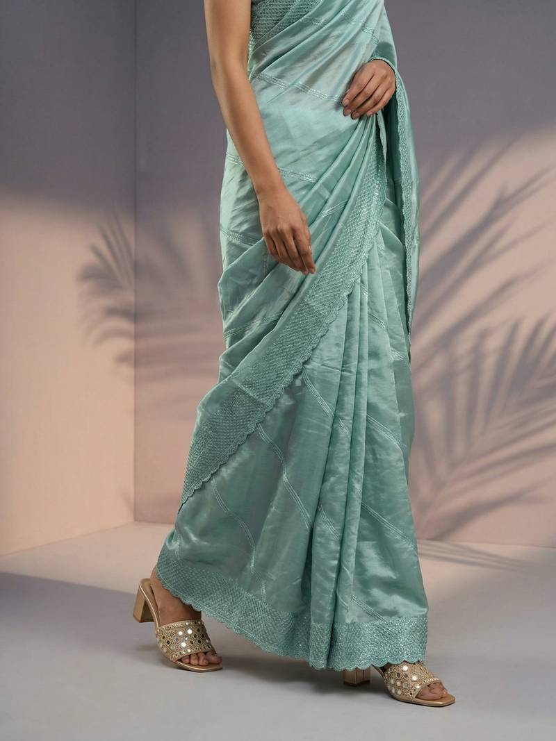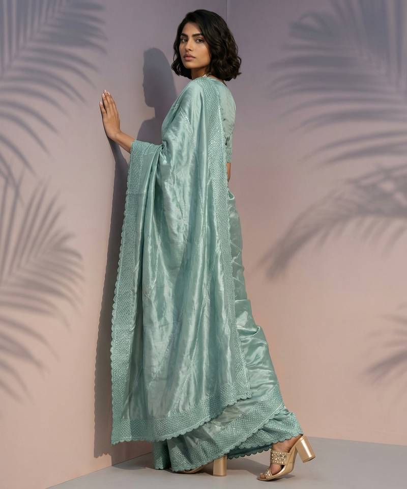 | Product Name | Sea Green Thread & Sequin Embroidery Border Work Organza Silk | |