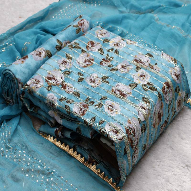 Semi lizi bizi elegance sequin-embellished suit with sequence dupatta unstitched