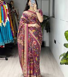 Beat color all over printed shimmer saree with unstitched blouse