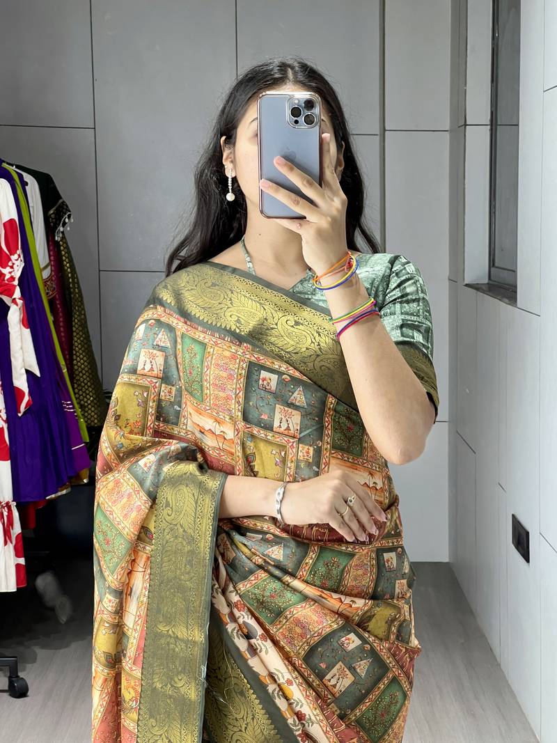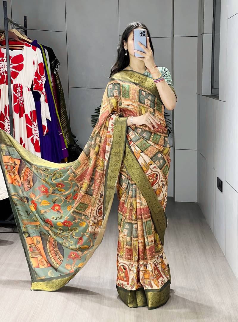 | Product Name | Green Color Kalamkari Printed Silk Saree With Unstitched Blouse | |