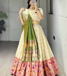 Green color zari weaving work paithani silk lehenga choli with unstitched blouse