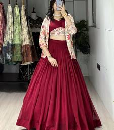 Maroon color plain foil work heavy gorgette lehenga fully stitched blouse & koti full stitched free size