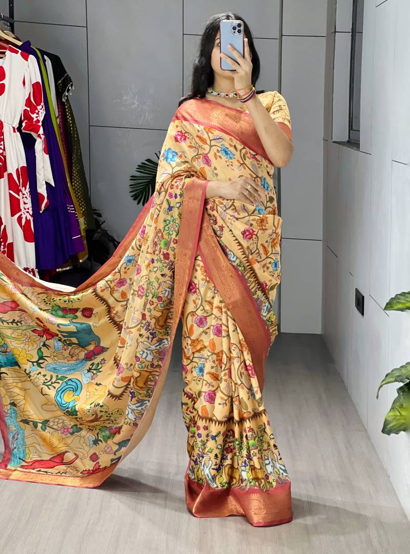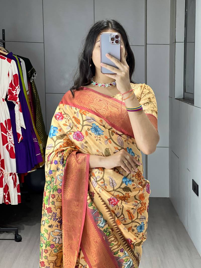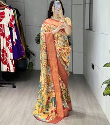 | Product Name | Peach Color Kalamkari Printed Silk Saree With Unstitched Blouse | |