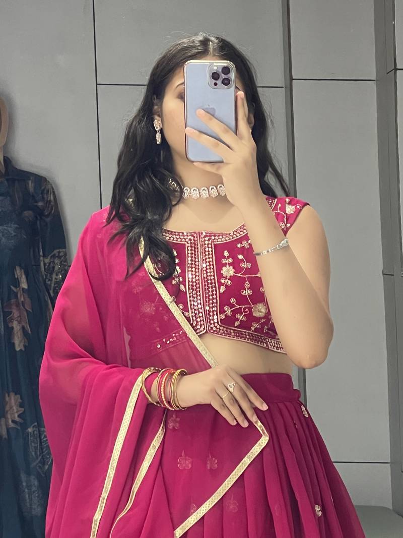 Product Name | Pink Embroidery Thread And Sequence Work Heavy Gorgette Lehenga With Fully Stitched Blouse | |