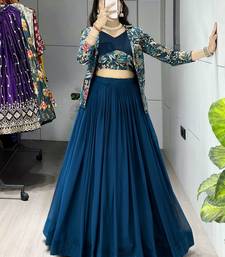 Rama color plain foil work heavy gorgette lehenga fully stitched blouse & koti- full stitched free size
