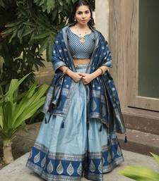 | Product Name | Sky Color Zari Weaving Work Kanchipuram Silk Pattu Lehenga Choli With Unstitched Blouse | |